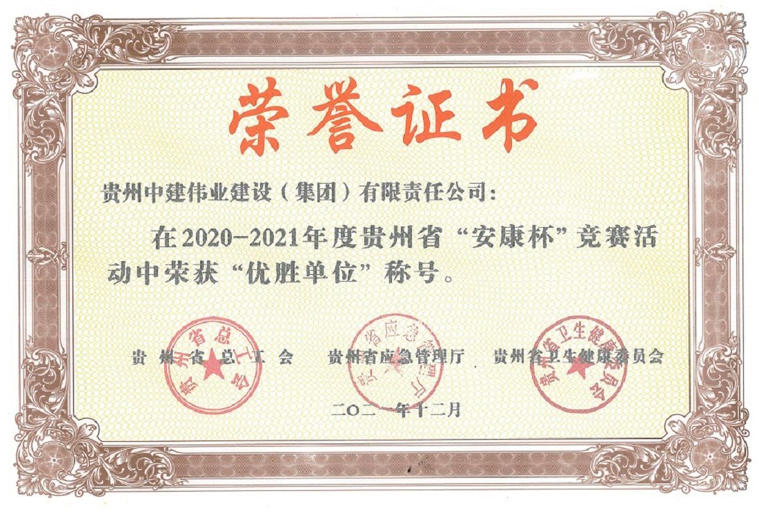 近期,,,,,贵州省总工会、贵州省应急治理厅、贵州省卫生康健委员会印发《关于表扬2020-2021年度贵州省“安康杯”竞赛优胜整体、优胜班组和优异小我私家的决议》,,,,,集团公司被授予“优胜单位”声誉称呼。。。。。