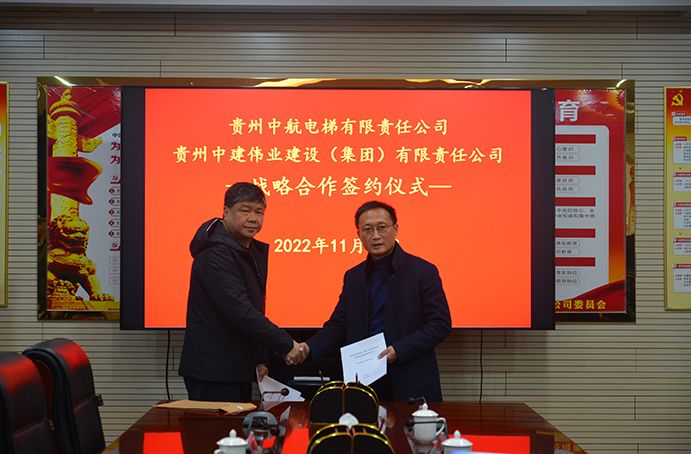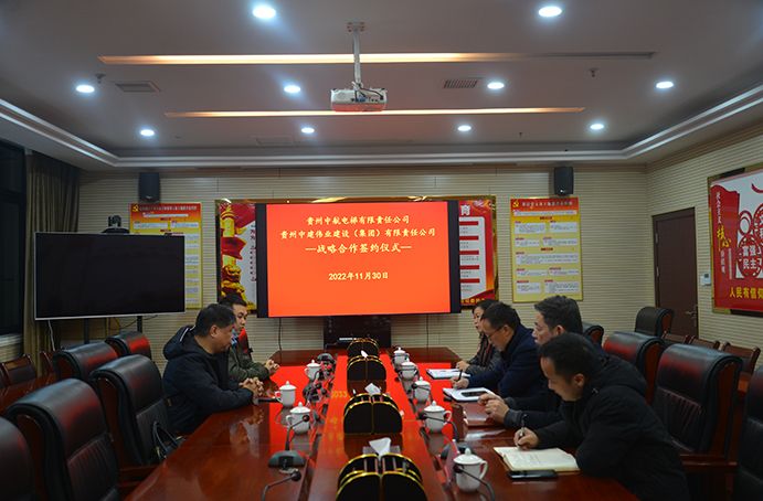 2022年11月30日,,,,,,贵州中建伟业建设(集团)有限责任公司党委副书记、总司理冯安翔,,,,,,在集团公司17楼聚会室热情接待贵州中航电梯有限责任公司党委书记、董事长胡明一行,,,,,,并签署战略相助框架协议。。。。。。。集团公司党委副书记王莉,,,,,,党委委员、副总司理王引明出席签约仪式。。。。。。。
