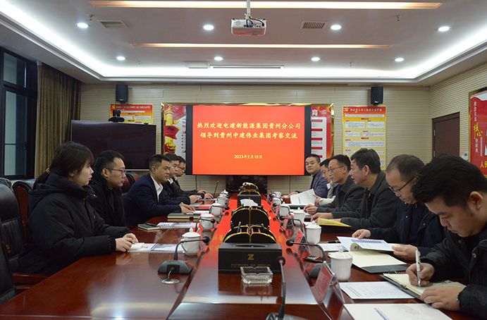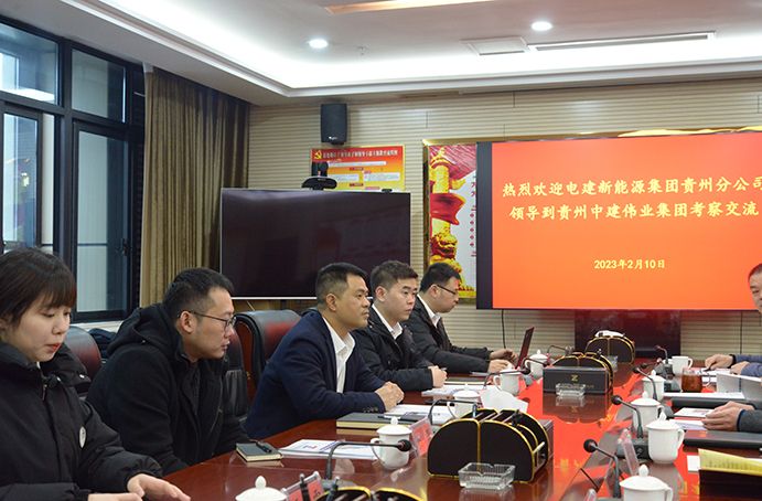 为深化黔东南州新能源资源的相助开发使用,,,,,,,,2023年2月10日,,,,,,,,央企中电建新能源集团贵州分公司副司理钟辉一行赴中建伟业集团公司考察交流,,,,,,,,告竣起源相助意向。。。。。。。。贵州中建伟业集团公司党委副书记、总司理冯安翔在集团公司17楼聚会室热情接待并主持座谈,,,,,,,,党委委员、副总司理王引明、王振田,,,,,,,,董事长助理张政雄、总司理助理田应钦、谋划部司理王剑和加入座谈。。。。。。。。
