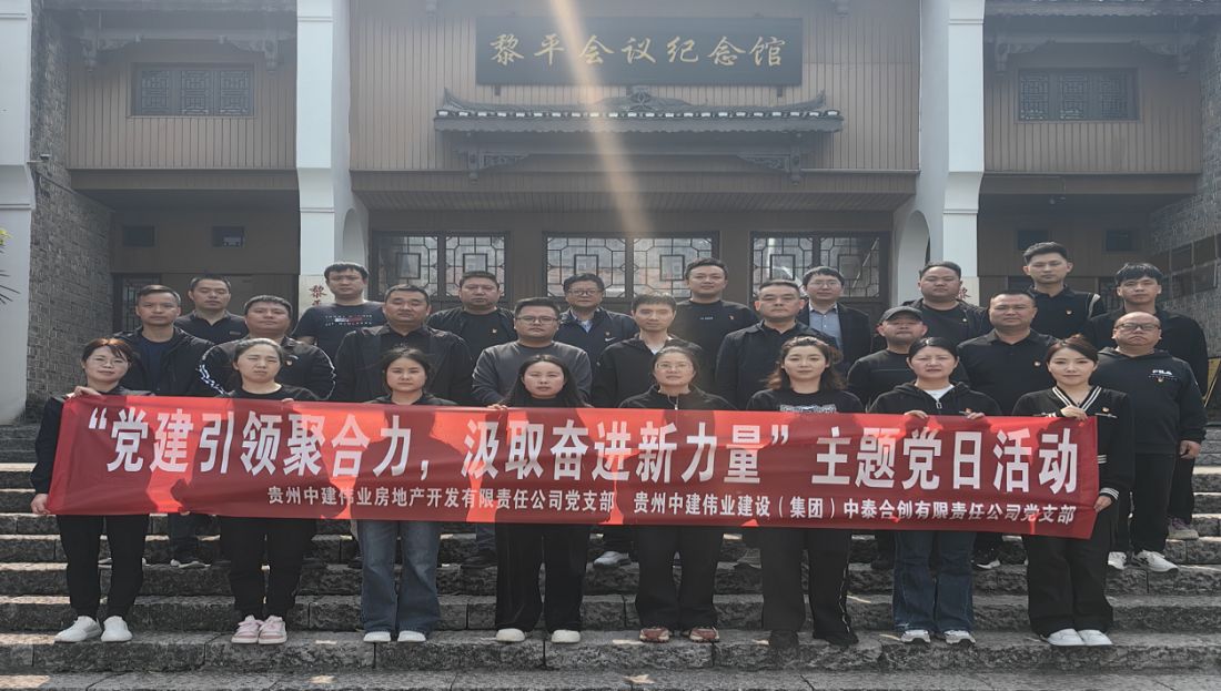 3月26日,,,,,,,贵州中建伟业房开公司党支部、中泰合创公司党支部前往黎平县团结开展“党建引领聚协力,,,,,,,罗致奋进新实力”主题党日运动,,,,,,,通过实地红色教育磨炼党性修养,,,,,,,凝聚高质量生长协力。。。。。。。